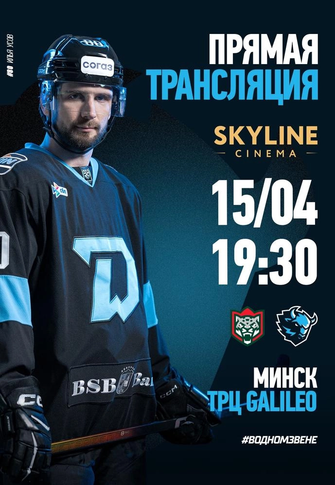 Прямая трансляция матча «Динамо-Минск» — «АК Барс» в SKYLINE Cinema13 апреля в 19:30 мы приглашаем вас на прямую трансляцию матча «Динамо-Минск» - «АК Барс». Выездной матч команды в плей-офф в сезоне 2025/2026 будет показан на большом экране! Присоединяйтесь к нам, чтобы поддержать свою команду и быть в одном звене! Также в этот день в SKYLINE Cinema вас ждёт особая атмосфера: активности и подарки от клуба «Динамо-Минск» и любимого талисмана — Зубрика.Это больше, чем трансляция — это настоящий хоккей в кругу своих. Не упустите шанс стать частью этого грандиозного события! Билеты уже в продаже — успейте забронировать свое место и поддержать любимую команду в SKYLINE Cinema!