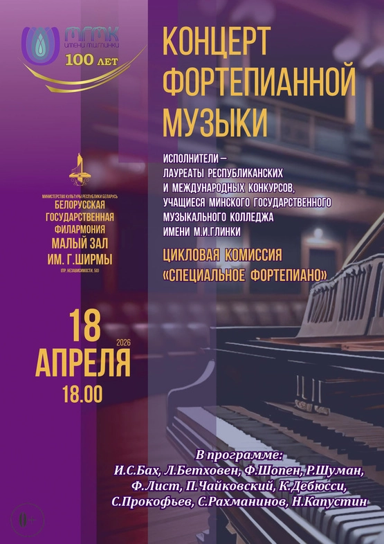 В концерте принимают участие лауреаты республиканских и международных конкурсов учащиеся цикловой комиссии «Специальное фортепиано» Минского государственного музыкального колледжа им. М.И.Глинки