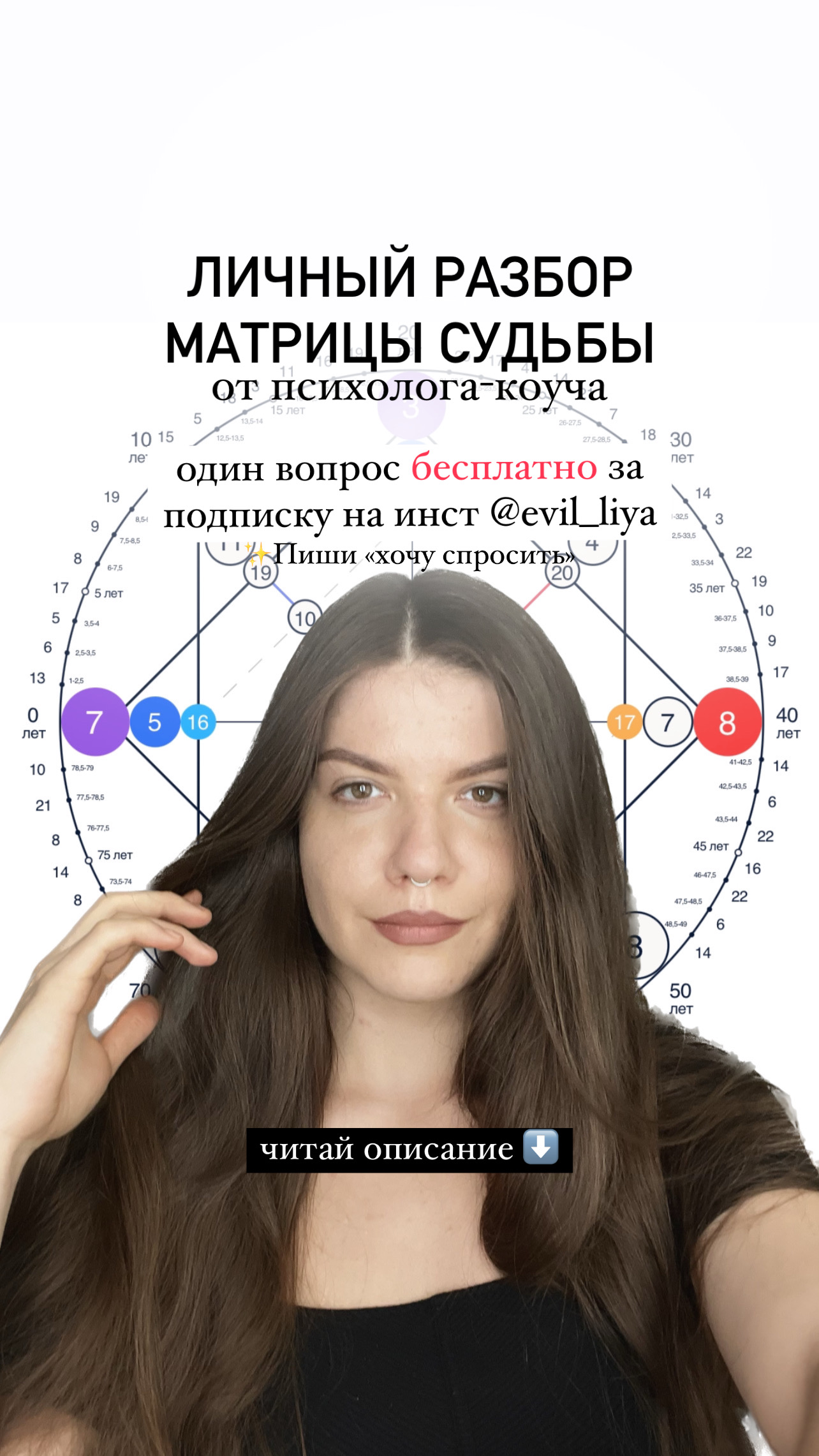 Чувствуешь себя в подвешенном/расстерянном состоянии? Апатия? Не знаешь, что делать и куда идти? Не понимаешь, чего хочешь? Меня зовут Эмилия, я психолог-коуч и эксперт по Матрице судьбы (система познания по дате рождения) Мой опыт разбора более 200 матриц разных людей позволит помочь вам: ✨ найти свое место в жизни (предназначение), реализоваться ✨ повысить доход в старой сфере или найти новое дело, которое точно попрет ❤️‍🔥 ✨ узнать себя лучше, принять себя и использовать таланты ✨ улучшить отношения или найти любовь Я даю ЧЕТКИЙ ПЛАН ДЕЙСТВИЙ и рекомендаций, которые у тебя точно сработают! никаких расплывчатых гороскопов. 📍Один вопрос бесплатно за подписку на Inst: evil_liya Пиши: «хочу спросить!»